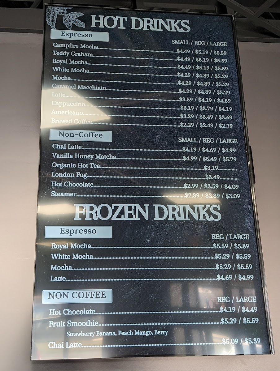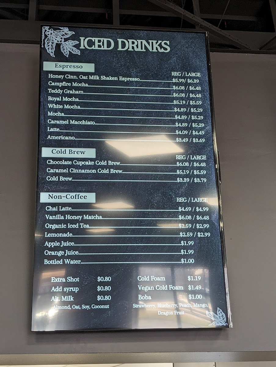 The menu is a treasure trove for any coffee enthusiast. Have your mornings transformed with one of their signature lattes like the Pumpkin Spice Latte or the uniquely scrumptious Sweet Potato Shaken Espresso. For an energizing boost, don’t miss out on their range of iced drinks such as the Green Jolly Rancher Energy or the refreshing Frosted Lemonade Energy. And for those who prefer a gluten-free treat, options abound here too, with delightful baked goods such as the gf scone or gf cookie that pair perfectly with your drink.