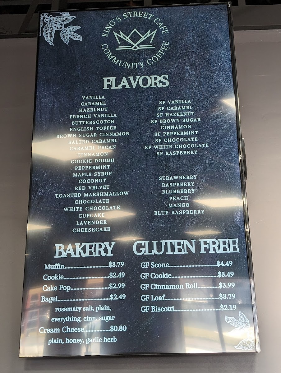 Stepping into King’s Street Cafe, you are immediately enveloped in a warm, inviting atmosphere. The spacious seating generates a perfect balance between casual and comfortable, allowing you the freedom to indulge in a quiet moment to yourself or share laughs with friends. Many customers rave about the ambiance, mentioning the inviting decor and the long communal tables ideal for both solo work and social gatherings. Savannah Orr, a satisfied customer, reflected on her experience, noting that the cafe's “atmosphere is perfect for getting some work done, reading, or catching up with a friend.”